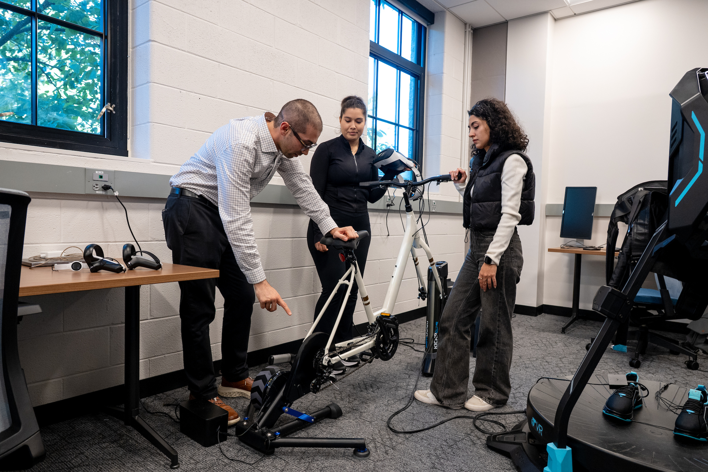 By integrating virtual reality environments with physical bicycle conditions, we provide cyclists with a highly realistic experience. This setup allows us to closely study their behavior under various traffic conditions and interactions with other road users, including automated vehicles. Our immersive approach enables us to gain valuable insights into cyclist behavior, enhancing our understanding of safety and dynamics on the road.